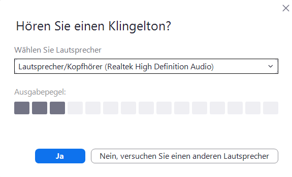 Testen Sie Ihren Lautsprecher und Ihr Mikrofon. Lautsprecher und Mikrofon sind anschließend betriebsbereit.