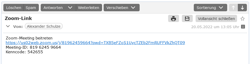 Durch Klick auf den Zoom-Meeting Link, öffnet sich ein Fenster in Ihrem Internet-Browser.