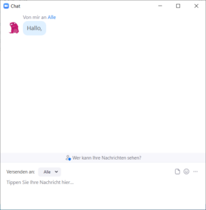 Über die Schaltfläche „Chat“ können Sie Nachrichten an alle Meeting-Teilnehmer und den Trainer versenden oder auch private Nachrichten an einzelne Personen.